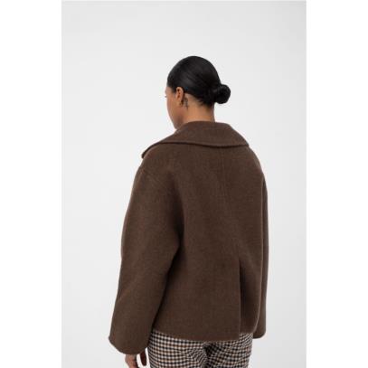 Abrigo corto con solapas y cierre de dos botones. Cuenta con una abertura en el centro de la espalda.