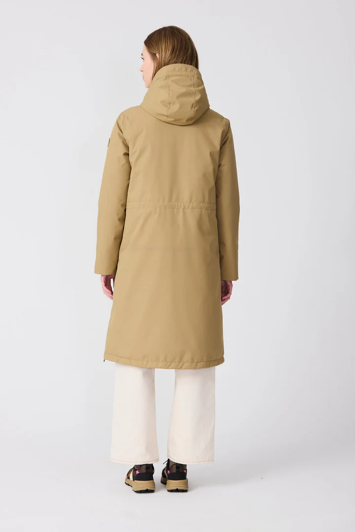 Abrigo largo silueta en A. Cremalleras en bolsillos y laterales selladas.