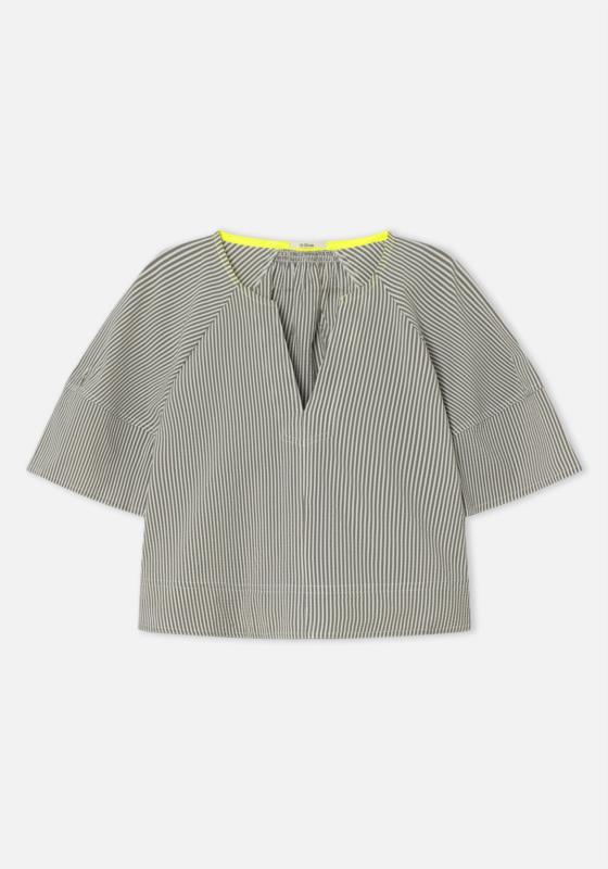 Blusa manga rangla y cuello en pico.