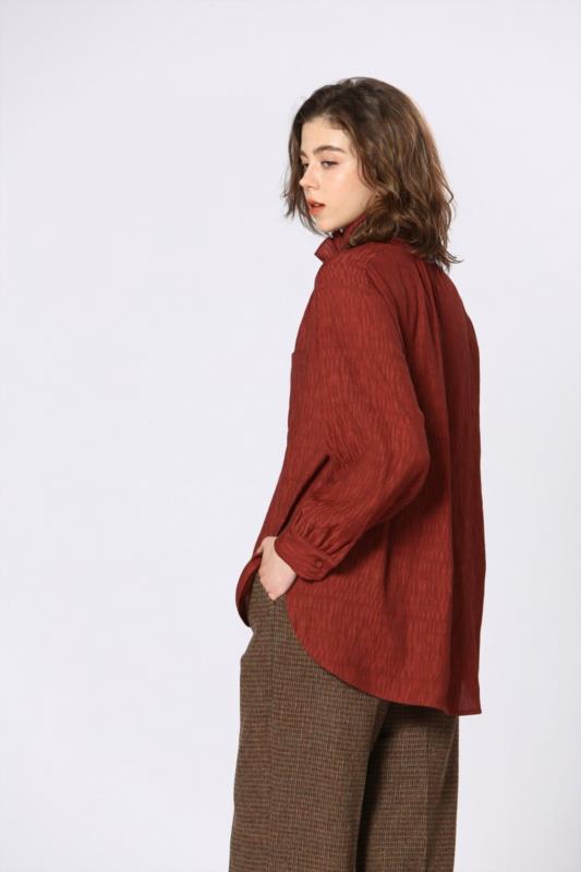 Camisa satinada. Cuello con volante.