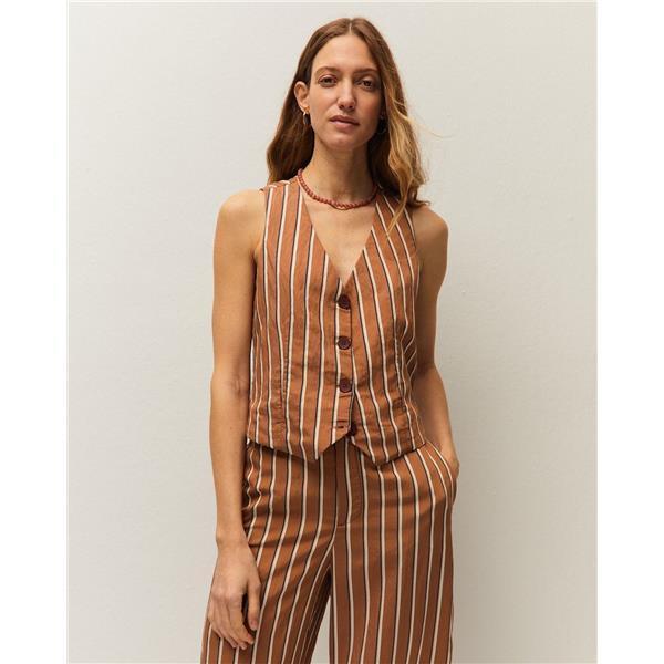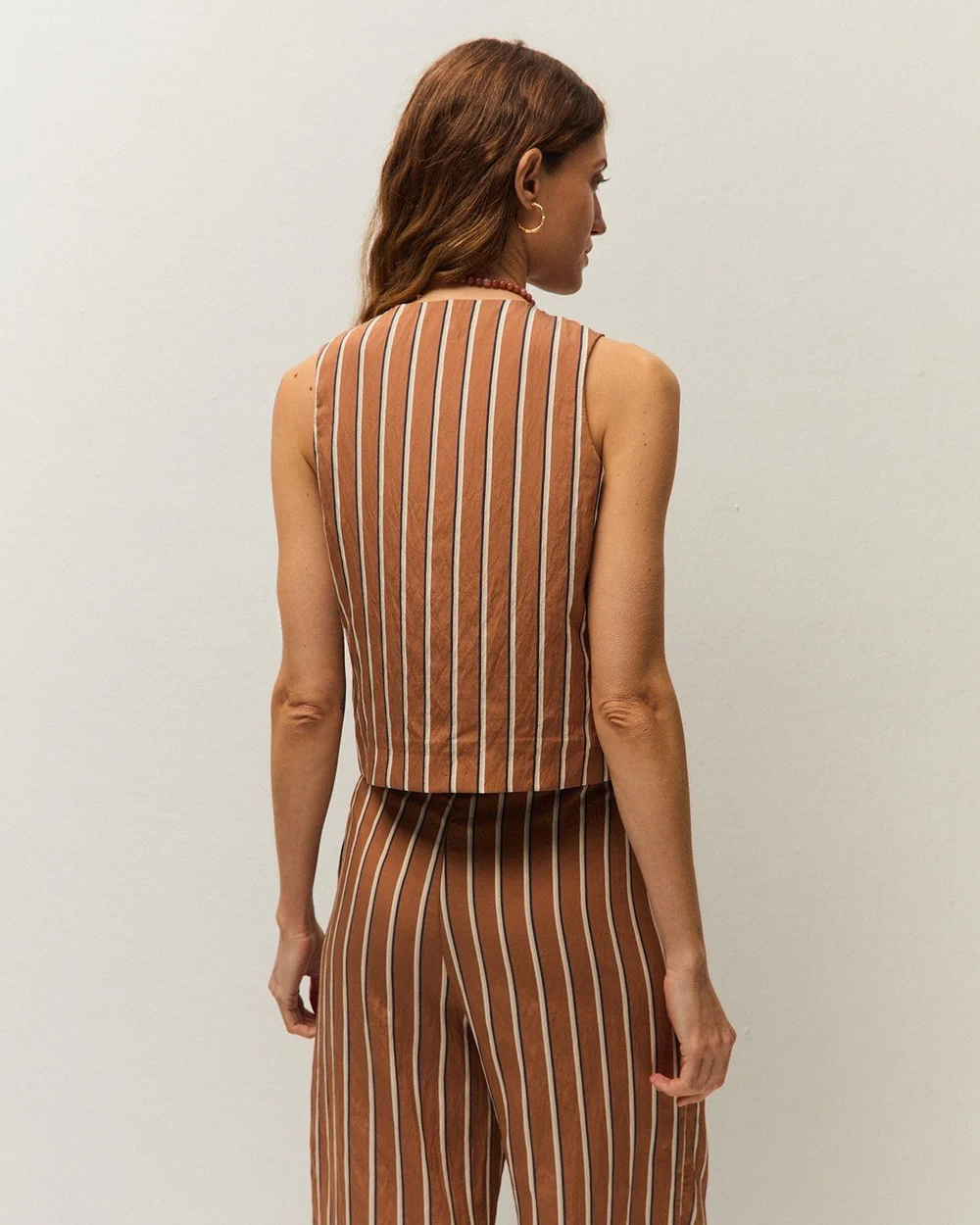 Chaleco raya diplomática entallado con botones, combínalo con el pantalón.