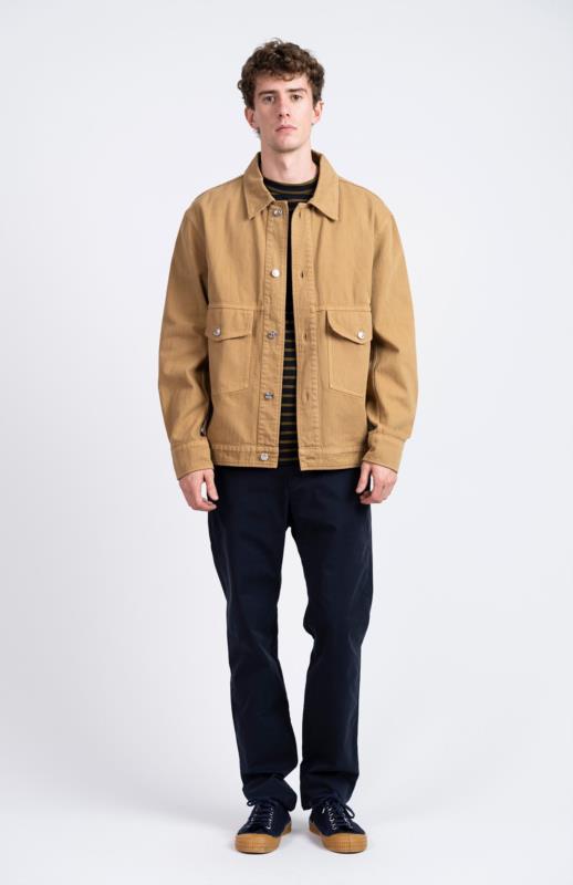 Cazadora tipo worker de cuello camisero y manga larga acabada en puño con botón confeccionada en algodón reciclado.