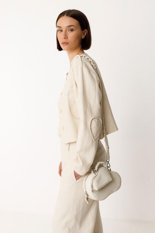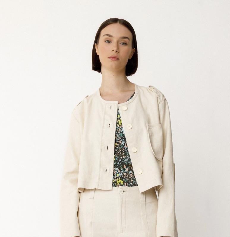 Chaqueta cropped cuello redondo bolsillo y botones delanteros.