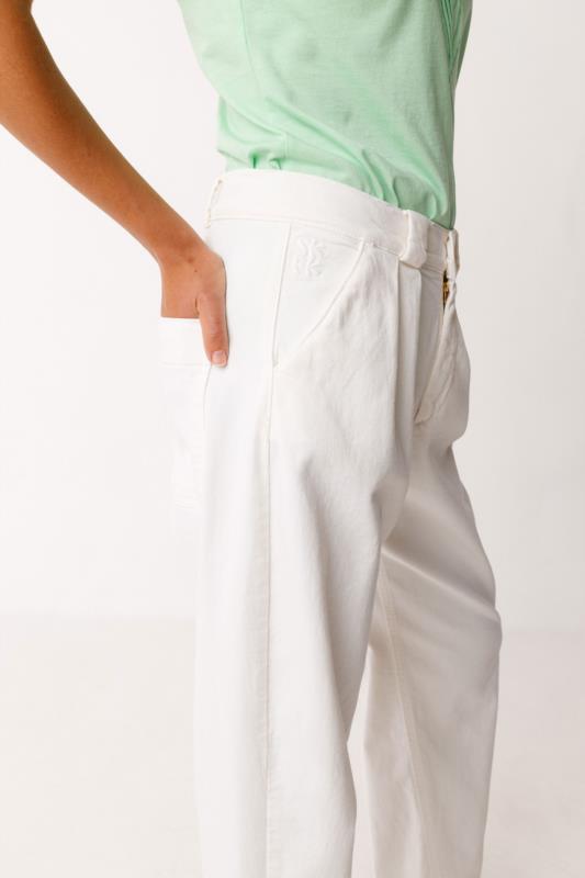 Pantalón holgado pinzas y cuatro bolsillos.