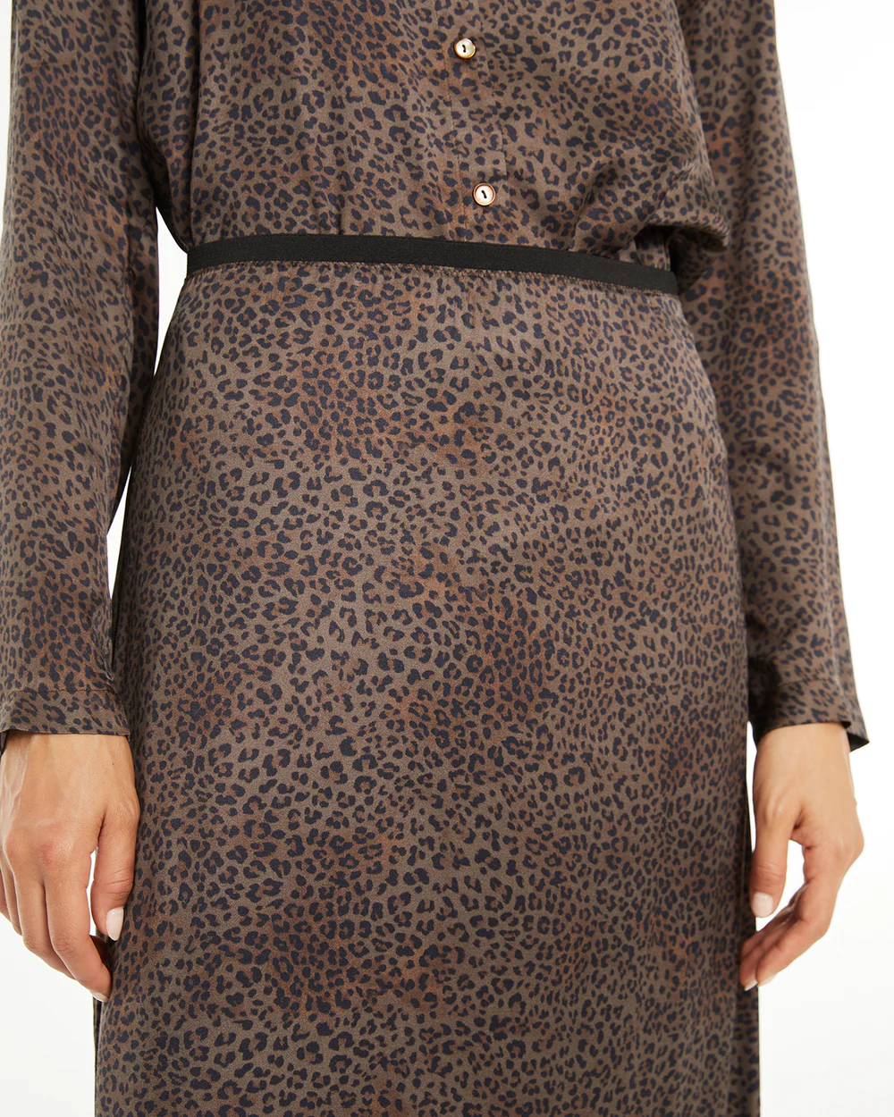 Falda animal print. Goma y cremallera en la cintura.
