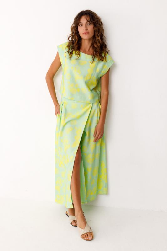 Falda midi pliegue asimétrico con bolsillos. Combínala con top AHIEN.