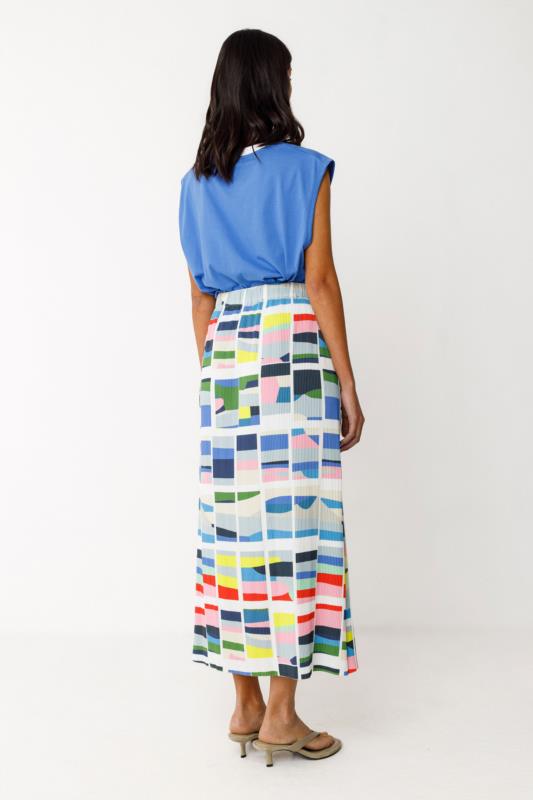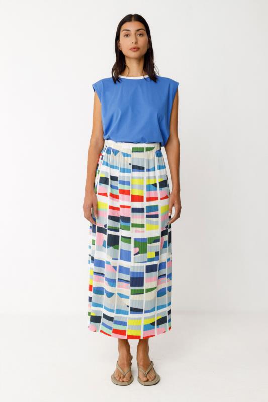 Falda midi efecto plisado tejido elástico.