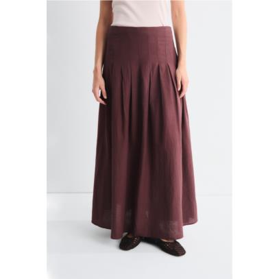 Falda midi plisada hasta cadera, con vuelo. Combínalo con el top SOLEIL.