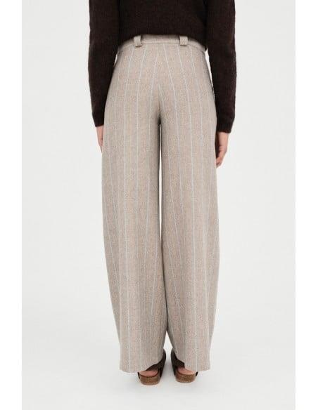 Pantalón holgado rayas. Bolsillos delanteros y presillas.