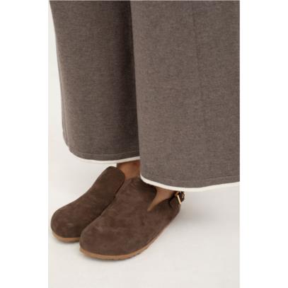 Pantalón punto pernera ancha. Goma cintura. Bajo color beige.