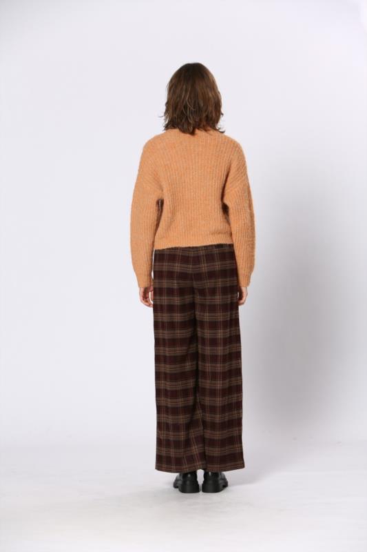 Pantalón pinzas y bolsillos. Goma en cintura.