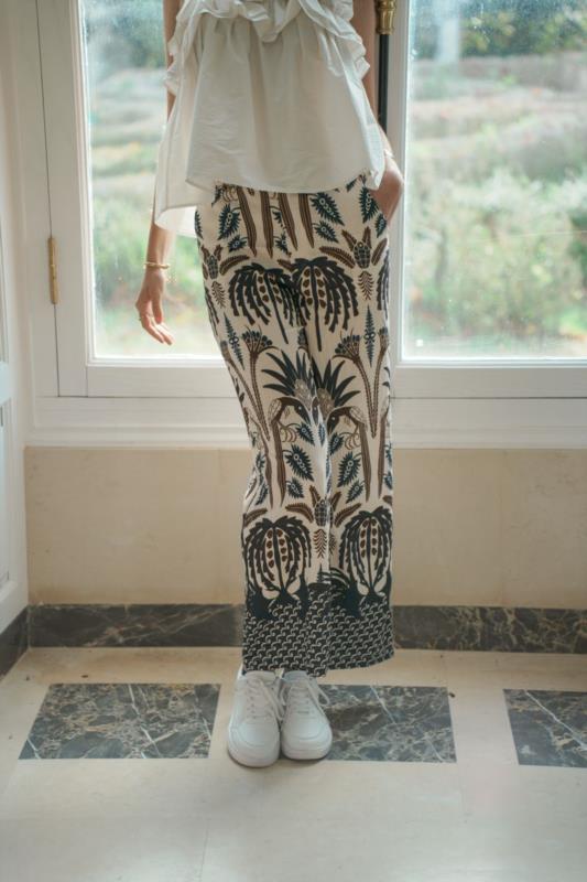 Pantalón estampado floral, con bolsillos y goma en cintura.