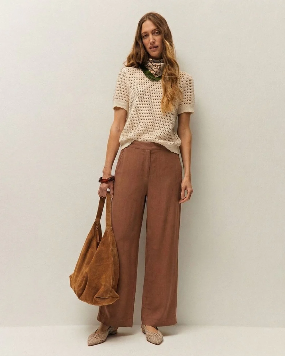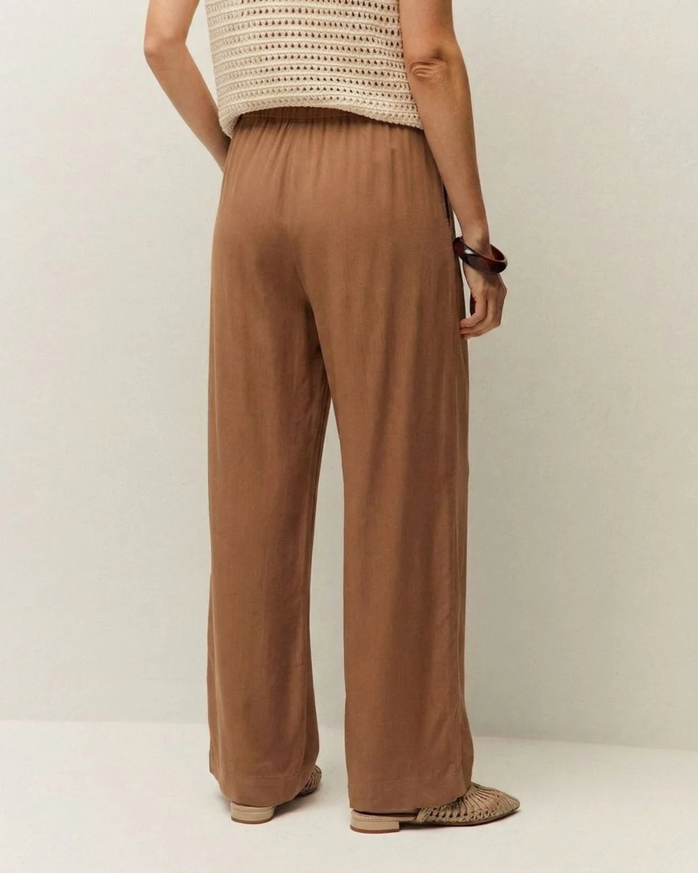 Pantalón ancho de cupro con goma en la espalda.