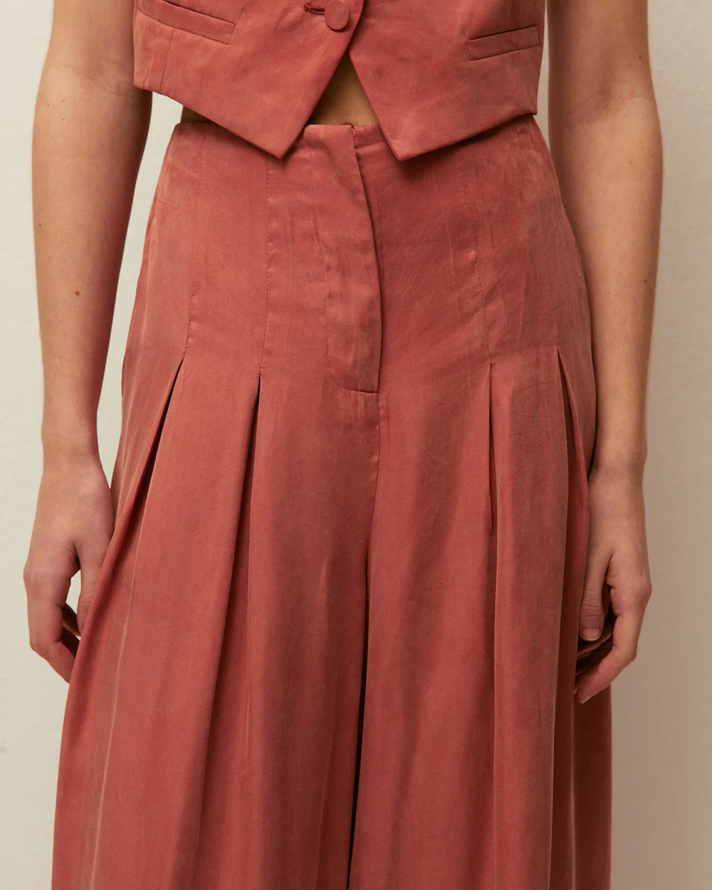 Pantalón tacto sedoso con doble pinza bolsillo. Combínalo con el chaleco.