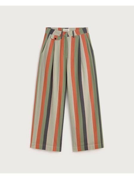 Pantalón pinzas rayas. Detalle bolsillo de tapa y pinzas. Top para combinar.