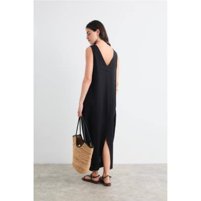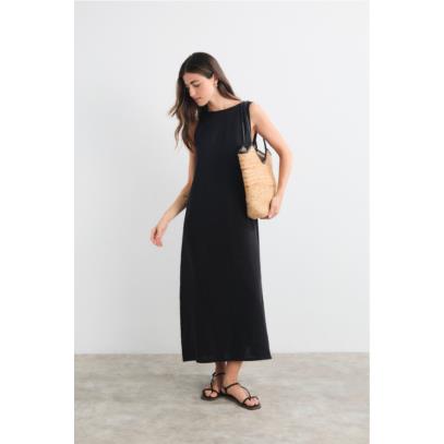 Vestido midi cuello barco delante y pico detrás.