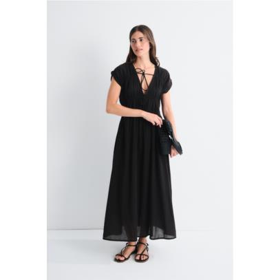 Vestido fruncido sin mangas maxiescote V.